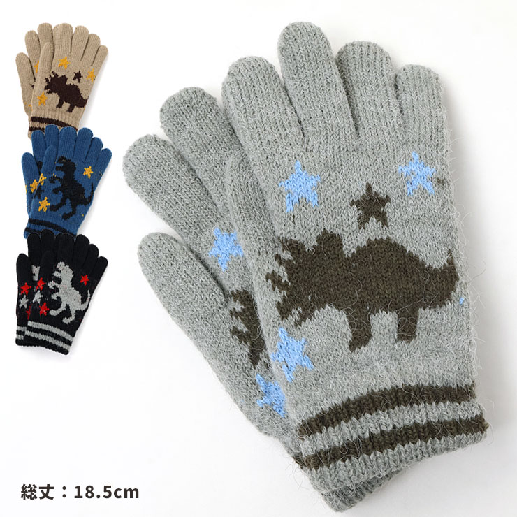 5本指手袋 恐竜 二重 2重手袋 ティラノサウルス トリケラトプス 男の子 キッズ 冬用 子供用 小学生 通学 グレー ネイビー ベージュ 黒 tmkn-7【メール便対象】