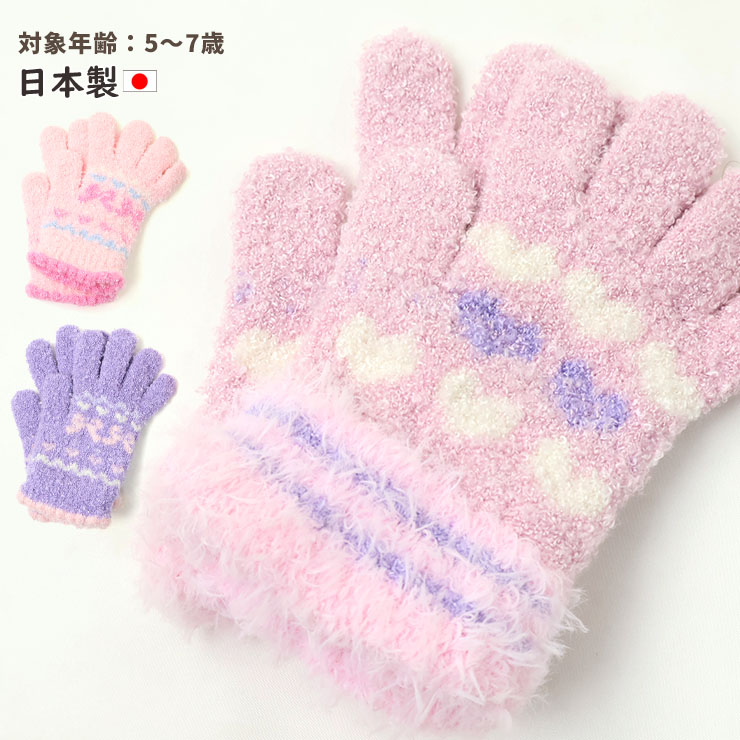5本指手袋 リボン ハート 女の子 キッズ 幼児 冬用 日本製 子供用 幼稚園 小学生 通園 通学 かわいい 5歳 6歳 7歳 ピンク 紫 tmkn-9【メール便対象】