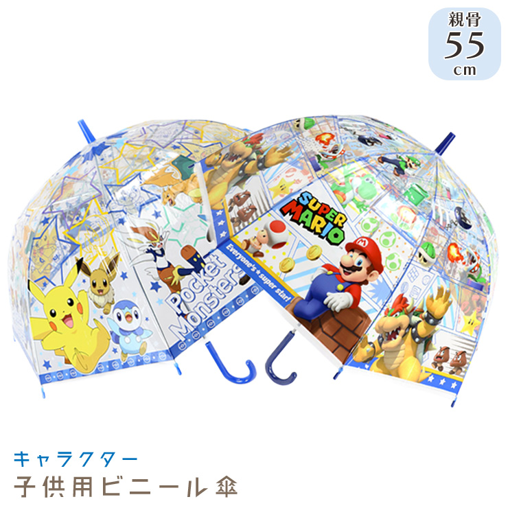 ビニール傘 ドーム型 キャラクター ポケットモンスター ポケモン スーパーマリオ 男の子 キッズ キッズ傘 子供傘 雨具 子供用 小学生 小学校 低学年 中学年 通学 55cm umb-001