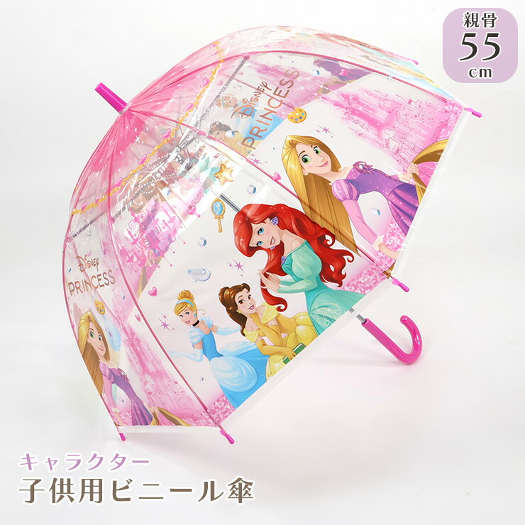 ビニール傘 ドーム型 キャラクター ディズニープリンセス ラプンツェル アリエル シンデレラ 女の子 キッズ キッズ傘 子供傘 雨具 子供用 小学生 小学校 低学年 中学年 通学 55cm umb-002