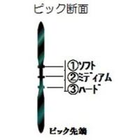 DAVAのコントロールピックは真ん中の部分が薄くなって、持つ位置によりシナリが変化するため、一枚のピックで、ソフト、ミディアム、ハードの反応の使い分けができ、サウンドの変化が得られるUSA特許の画期的なピックです。プレー中においても、たとえばストロークプレー時は少し上を持ち、リードプレーなら下までつかむことで、1枚で瞬時にいろいろ使い分けができます。