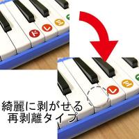 4 種類のシール(ひらがなシール/カタカナシール/しろいろシール/イラストシール)が鍵盤をかわいくアレンジし楽しくドレミを学べます。水に強く破れにくいユポタック使用。UV 加工で色あせに強いシールは綺麗に剥がせる再剥離タイプ。便利な名前シール付。