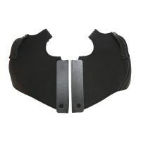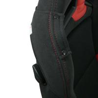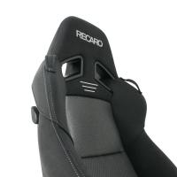 レカロシート背面上部両側部分、ショルダーサポート用の「RECARO SR-7/7F 専用ショルダーカバー」です。カバーの端部には固定するための差込ガイド、マジックテープが付いているので、シート本体を取り外すことなく簡単に装着することができます。ショルダー上部にはシートベルトを通すためのベルトホルダーが付いています。装着後も見た目が変わらないように、Wステッチ部分はGK100・SK100や旧型LASSIC純正と同色の糸を使用しています。