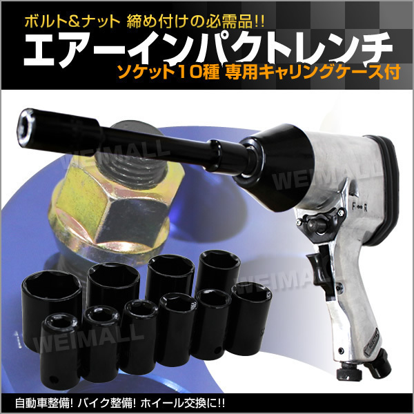エアーインパクトレンチ 10pcsセット 差込角1/2 12.7mm 収納BOX付き