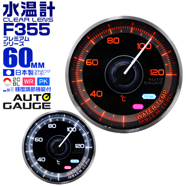 オートゲージ 日本製モーター仕様 水温計 60mm 追加メーター クリアレンズ ワーニング ピーク機能 計器 白/赤点灯 F355