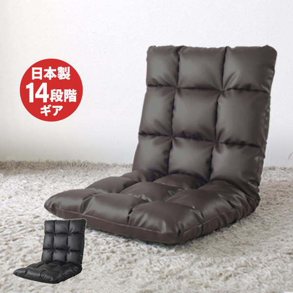 リクライニングチェア 座椅子 マットブラック レザー生地 ハイバック フロア ソファ へたりにくい 14段階調節 日本製ギア 北欧 コンパクト