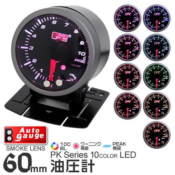 油圧計 オートゲージ AutoGauge 60mm 10色 点灯 スモークレンズ 計器 スイス製モーター仕様 黒 自動車 後付け メーター