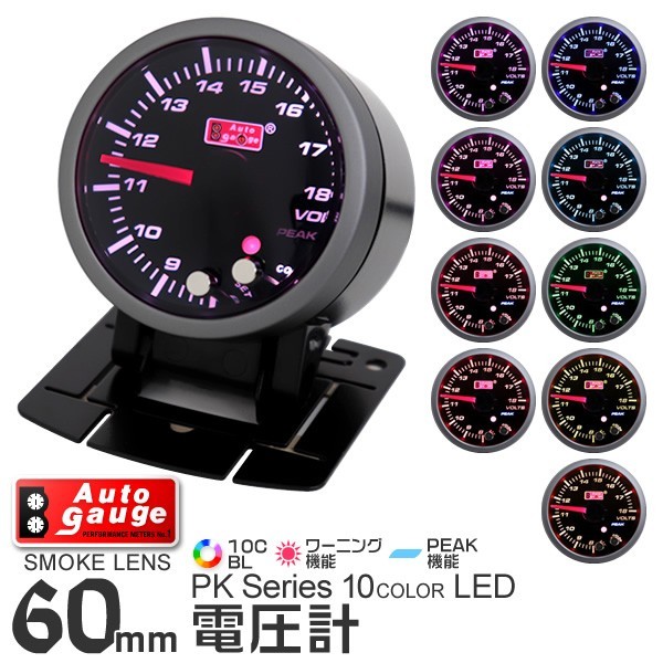 電圧計 オートゲージ AutoGauge 60mm 10色 点灯 スモークレンズ 計器 スイス製モーター仕様 黒 後付け メーター