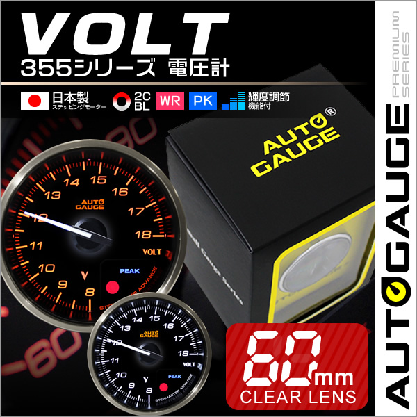 電圧計 オートゲージ AutoGauge 日本製モーター 60mm 追加メーター クリアレンズ 白 赤点灯 後付け