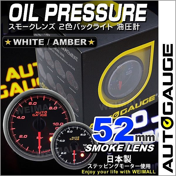 油圧計 オートゲージ AutoGauge 52Φ スモークレンズ ホワイト/アンバーLED ワーニング機能付 自動車 後付け メーター