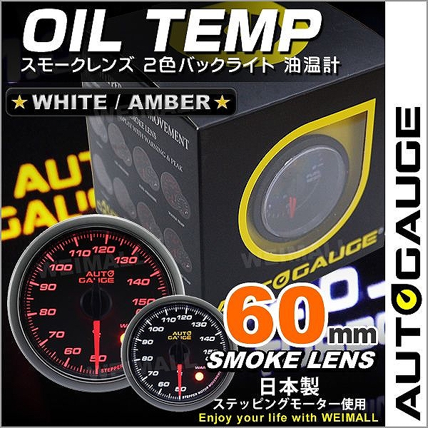 油温計 オートゲージ AutoGauge 60Φ スモークレンズ ホワイト/アンバーLED ワーニング機能付 後付け メーター