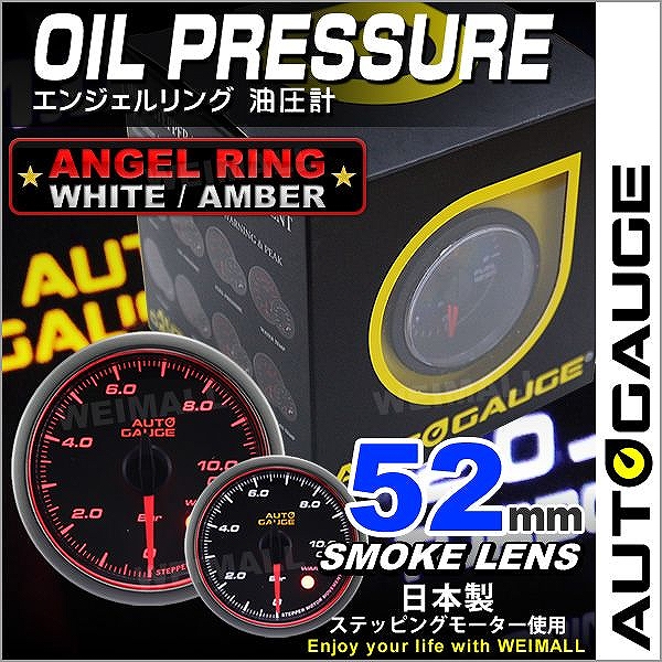 油圧計 オートゲージ AutoGauge 52Φ エンジェルリング スモークレンズ ホワイト/アンバーLED ワーニング機能付 自動車 後付け メーター