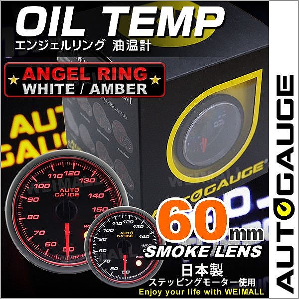 油温計 オートゲージ AutoGauge 60Φ エンジェルリング スモークレンズ ホワイト/アンバーLED ワーニング機能付 後付け メーター
