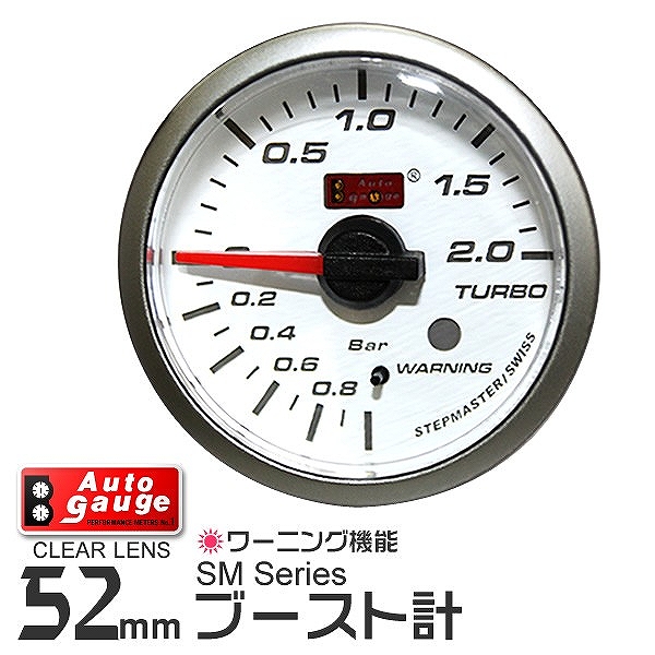 ブースト計 オートゲージ AutoGauge SM 52Φ ホワイトフェイス ブルーLED ワーニング機能付 後付け メーター