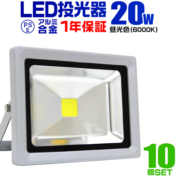 LED投光器 20W 200W相当 防水 作業灯 外灯 防犯 ワークライト 看板照明 昼光色 10個セット 一年保証