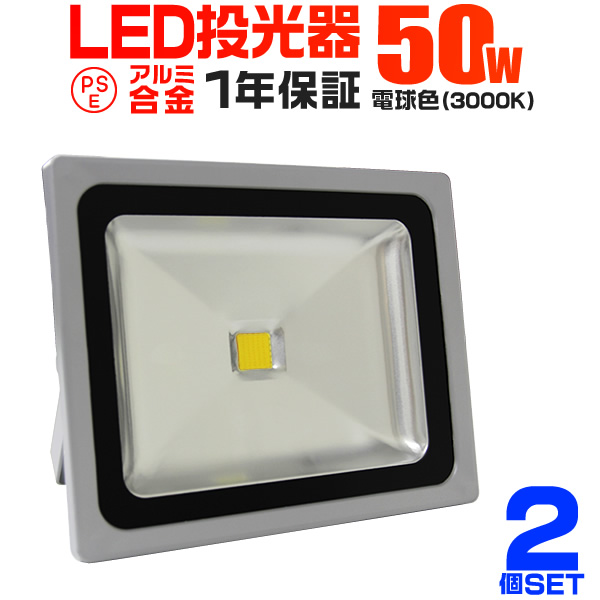 LED投光器 50W 500W相当 防水 作業灯 外灯 防犯 ワークライト 看板照明 電球色 一年保証 2個セット