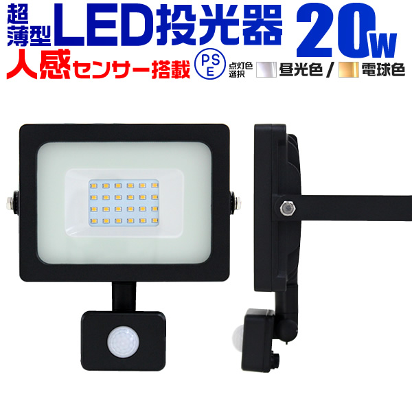 LED投光器 人感センサー 20W 200W相当 センサーライト 作業灯 外灯 3mコード付 昼光色 電球色