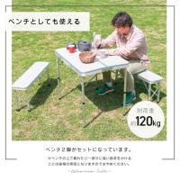 軽量アルミ製+取っ手付きで気軽に持ちだして、アウトドアやBBQにぴったりのテーブル&ベンチセットです。