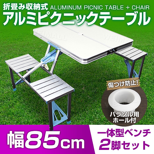 アウトドアテーブル セット キャンプ ベンチセット 折りたたみ 軽量 アルミ 収納 レジャーテーブル バーベキュー BBQ 85×67cm MERMONT