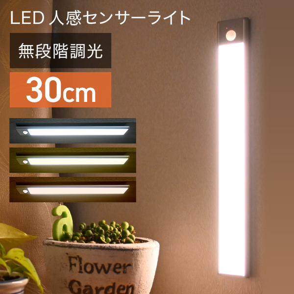 人感センサーライト 充電式 室内 玄関 廊下 防犯 トイレ LED 30cm ライト 3段階調色 無段階調光 薄型 軽量 自動点灯 足元灯 フットライト 懐中電灯 高感度