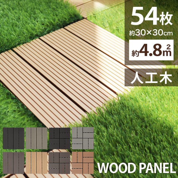 ウッドパネル ウッドデッキ 人工木 人工芝 ベランダ 54枚セット パネル ジョイントパネル 庭 タイル 置くだけ 腐らない ウッドタイル テラス 玄関 DIY