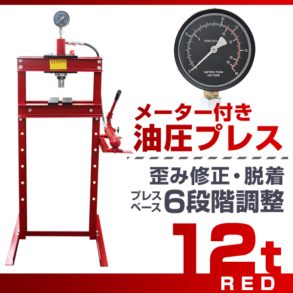 油圧プレス 12トン メーター付 門型 油圧プレス機 12t 赤 自動車整備