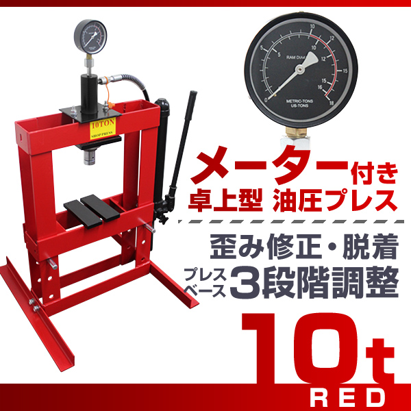 油圧プレス 10トン メーター付 門型 油圧プレス機 10t 赤