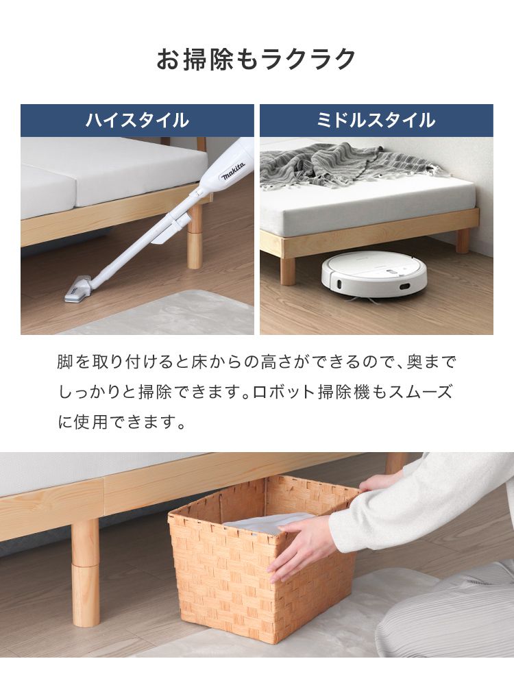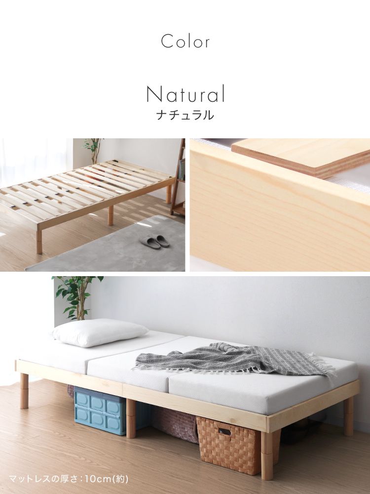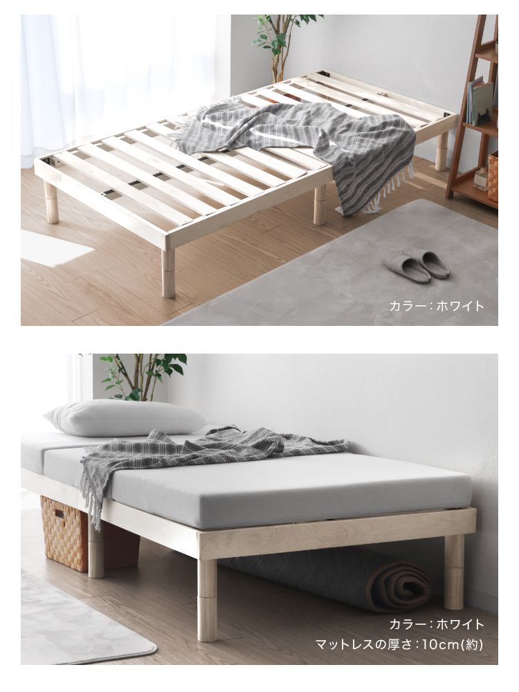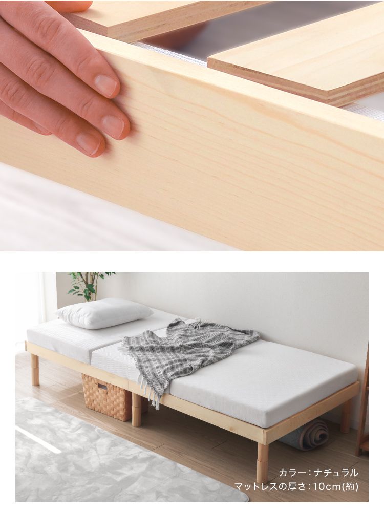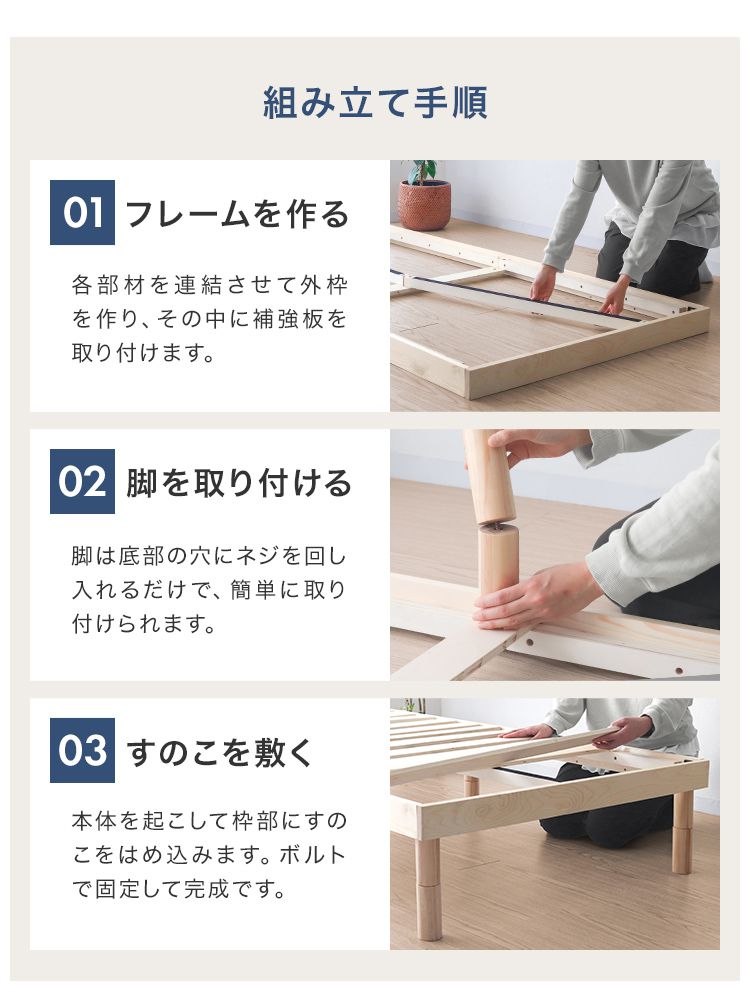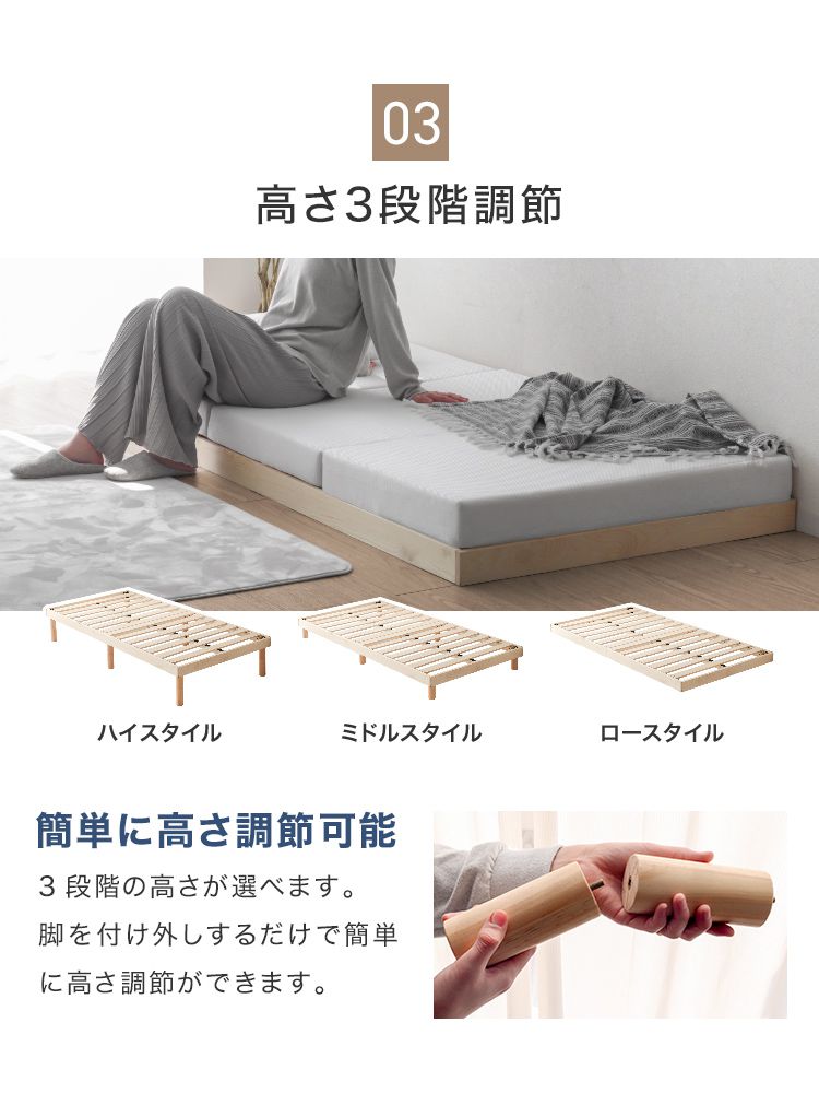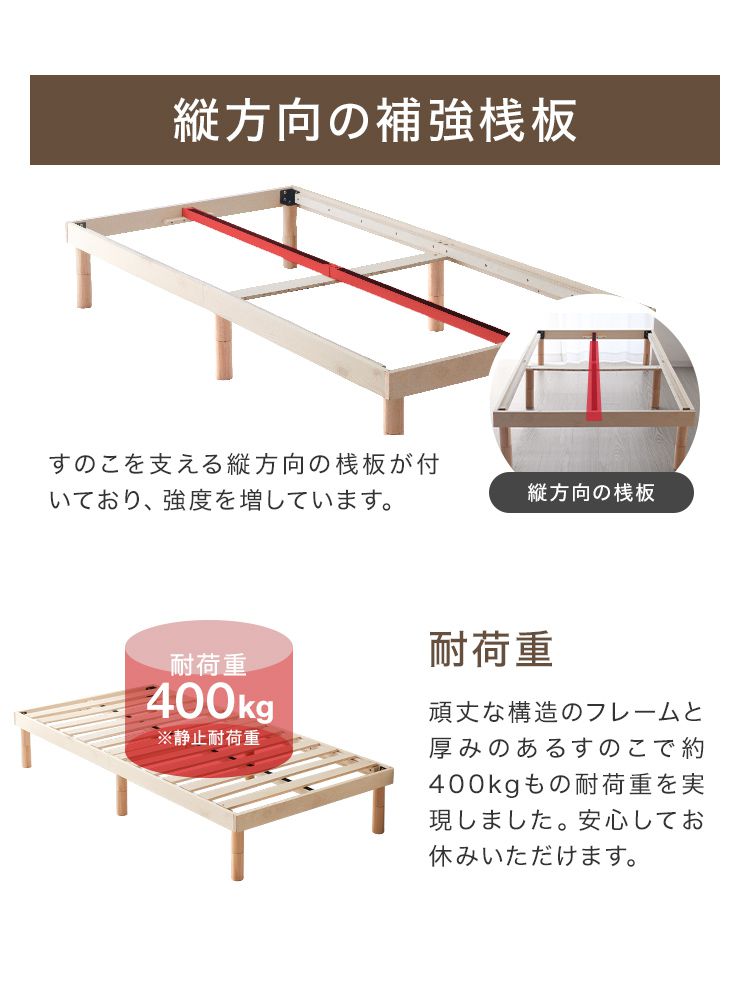 すのこベッド シングル 天然木 高さ3段階調整 ベッド下大容量収納 通気性抜群 簡単組立 省スペース 布団マットレス両対応 耐久性高