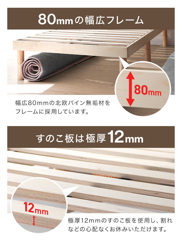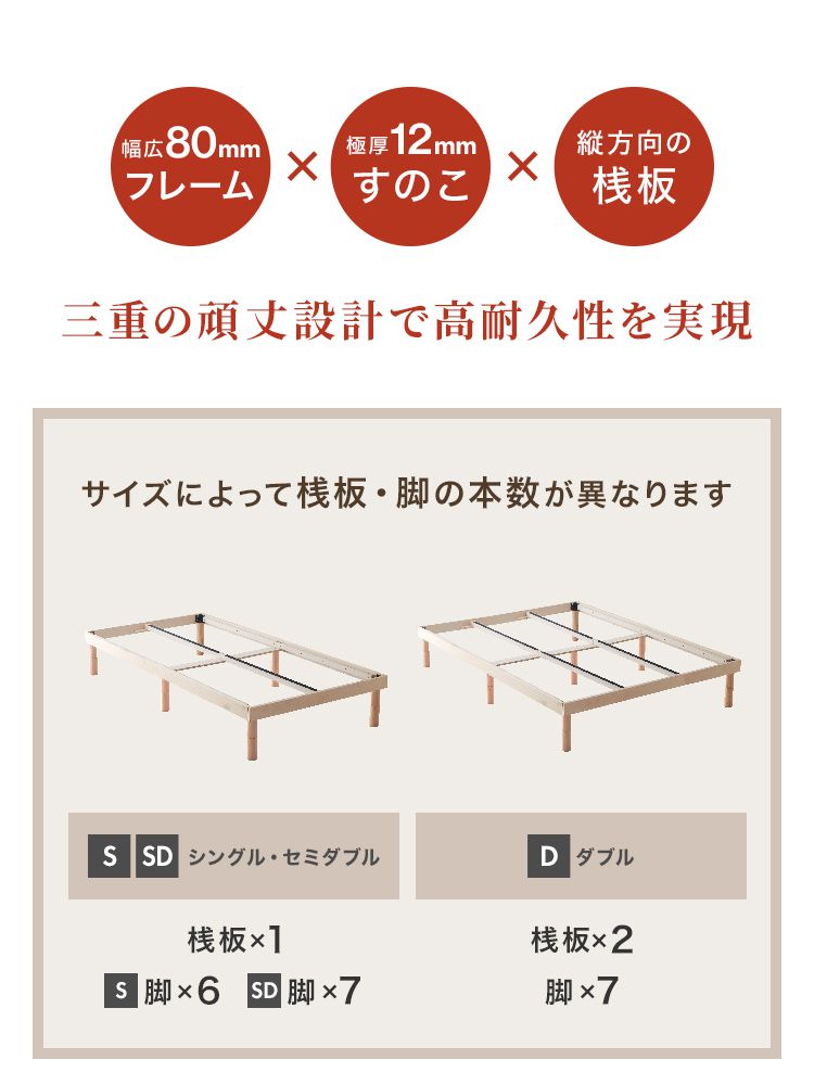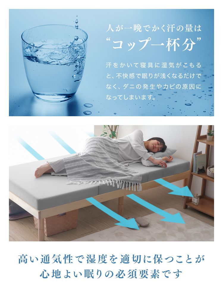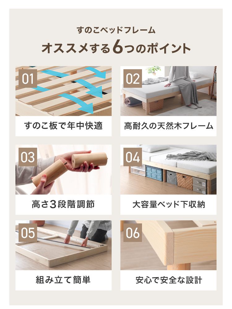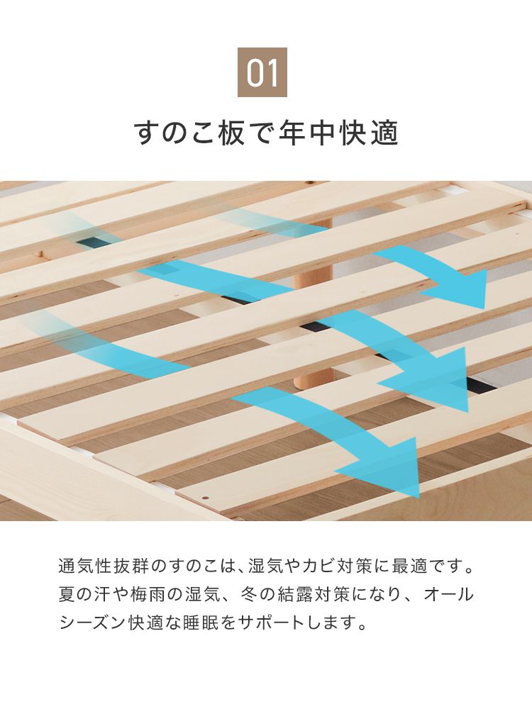 すのこベッドフレームは通気性抜群で年中快適な睡眠を実現します。
