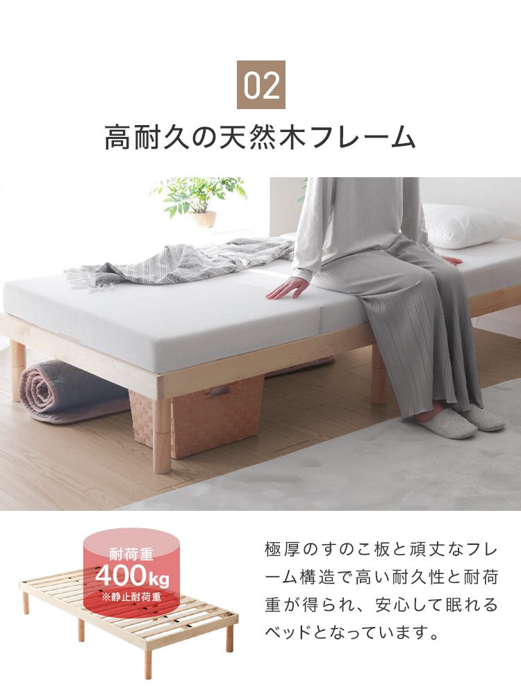 丈夫なフレームできしみ少なく耐荷重抜群、寝返りも安定。