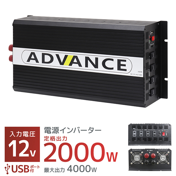 インバーター 非常用電源 12V 100V ポータブル電源 定格 2000W 最大 4000W 修正波 疑似正弦波 矩形波 切替可能 自動車用