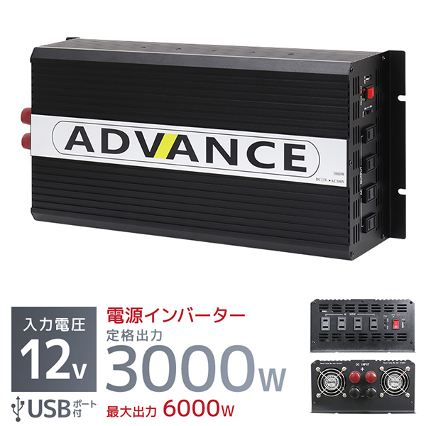 インバーター 非常用電源 12V 自動車用 100V ポータブル電源 定格 3000W 最大 6000W 修正波 疑似正弦波 矩形波