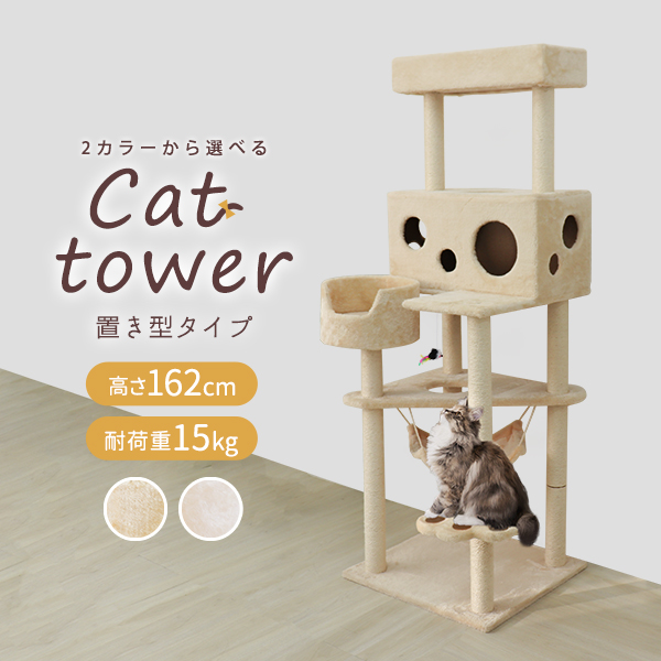 キャットタワー 据え置き 高さ162cm 大型猫 中型 爪とぎ おもちゃ 運動不足解消 省スペース 子猫 シニア 多頭飼い 肉球型 ハンモック ベッド 猫タワー