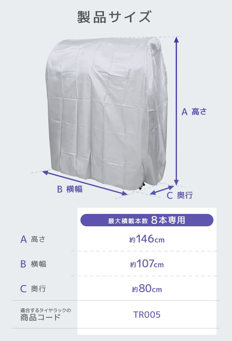 タイヤラックカバー 8本用 収納 タイヤラックカバーのみ 屋外 保管 タイヤ収納 軽自動車用 大型自動車用