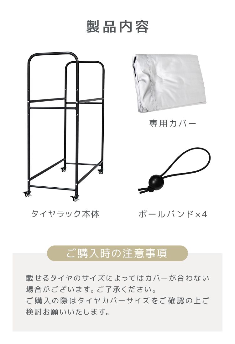 季節の変わり目や、スタッドレスタイヤのオフシーズン、買い替え用など増えるタイヤの収納にとっても便利!
