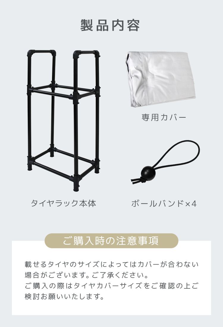 ・載せるタイヤのサイズによってはカバーが合わない場合がございます。
