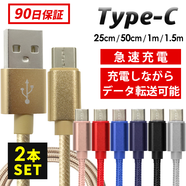 USBケーブル Type-Cケーブル 断線しにくい サイズ選べる 2本 0.25 0.5 1 1.5 2m 充電器 長さ 高速充電 データ転送 スマホ アンドロイド iPhone 充電ケーブル