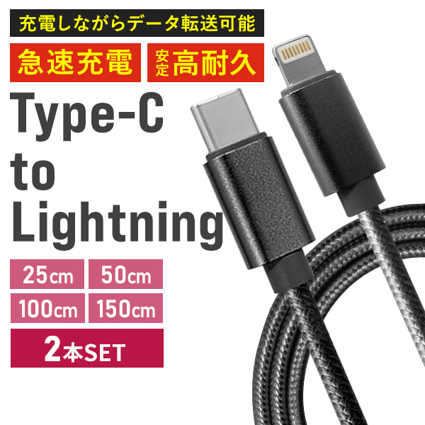 ライトニングケーブル 2本セット Type-C 充電ケーブル iPhone Lightning 25cm 50cm 1m 1.5m ケーブル タイプC USB 急速充電 断線防止 Android 充電器