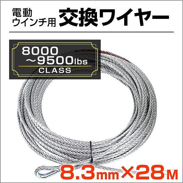 交換用 ワイヤー 電動ウインチ 電動ホイスト 8000〜9500LB 3628〜4309kg Φ8.3mm×28M 運搬用チェーンブロック