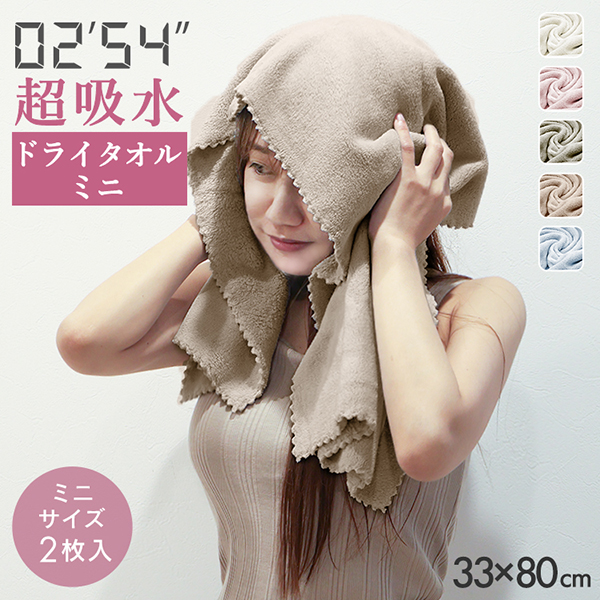 フェイスタオル ミニ 2枚セット ヘアドライタオル 吸水タオル ドライヤー短縮 タオルキャップ ターバン 吸水速乾 大判