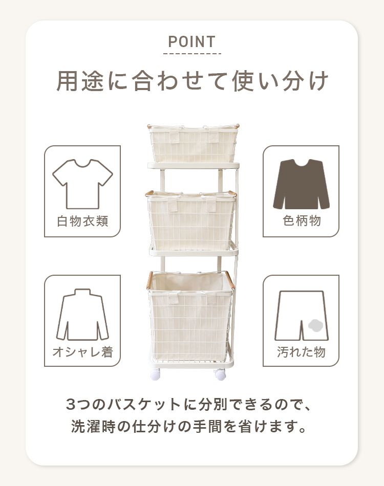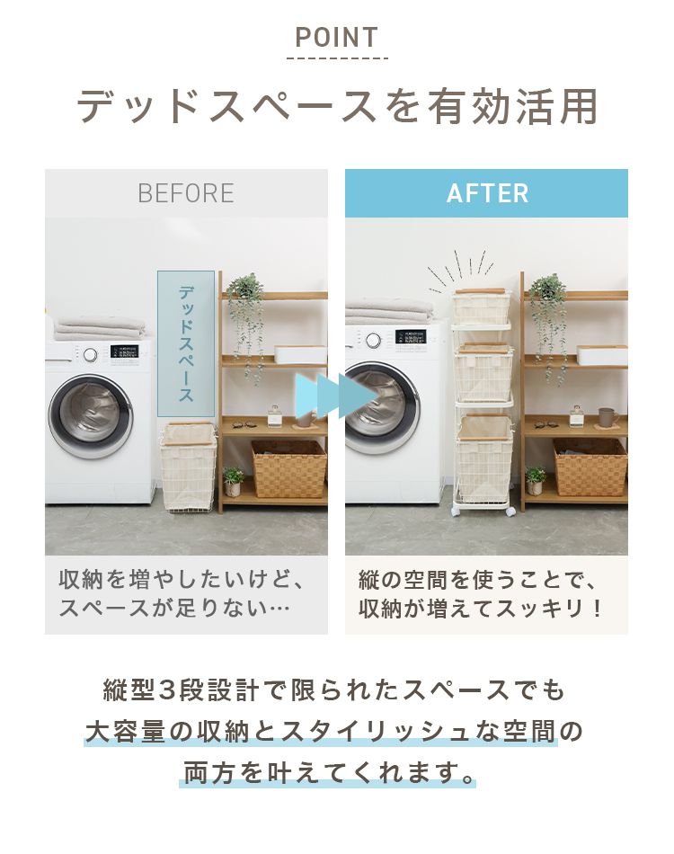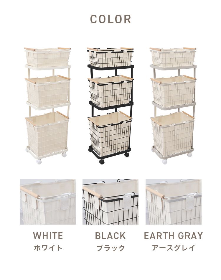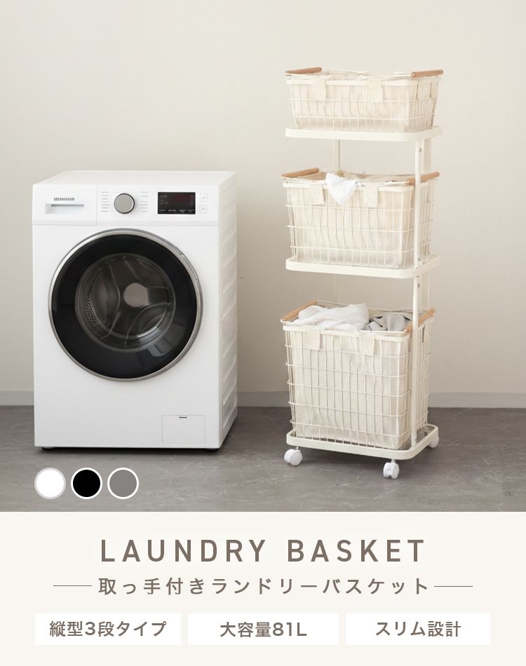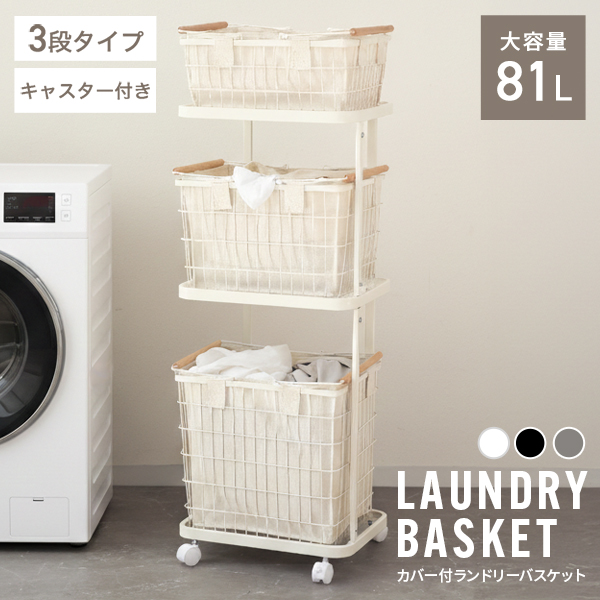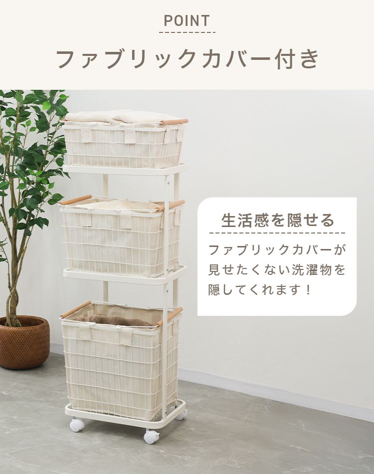 ランドリーバスケット 洗濯カゴ 3段 ランドリーワゴン 脱衣かご キャスター付き カバー付き スリム 大容量 おしゃれ ランドリーワゴン 洗濯物入れ メッシュ