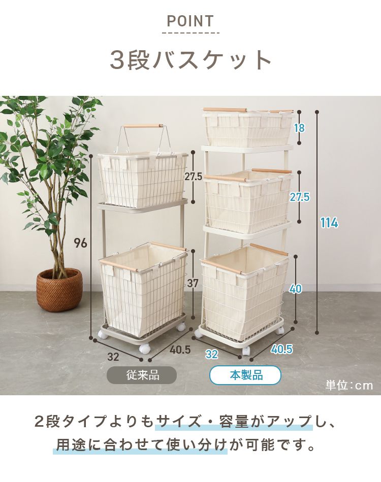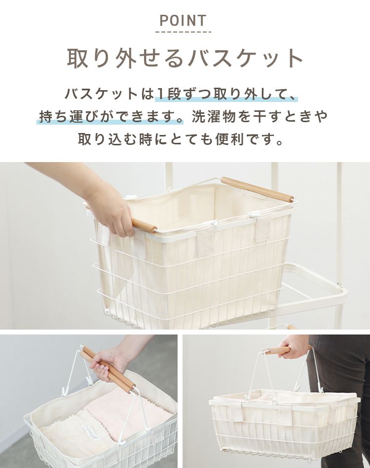 3つのバスケットは各1段ずつ取り外して持ち運びできます。