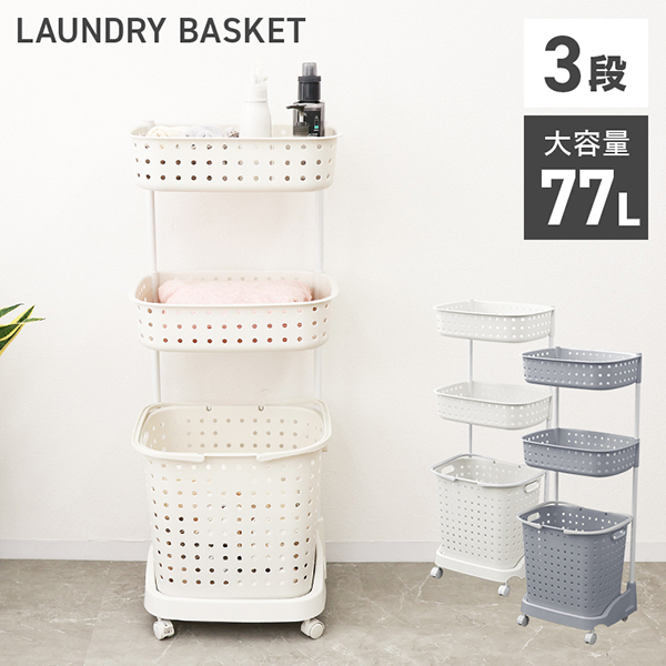 ランドリーバスケット 3段 スリム ランドリーワゴン キャスター付き 洗濯かご 洗濯物入れ 脱衣カゴ 大容量 ランドリーラック 収納 隙間収納 おしゃれ