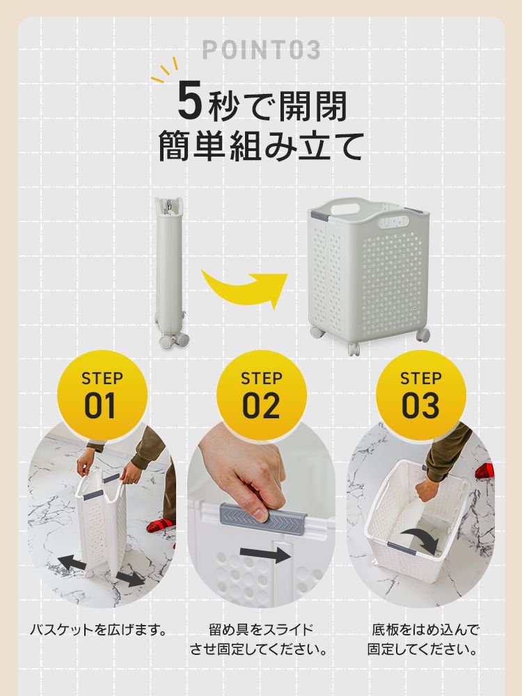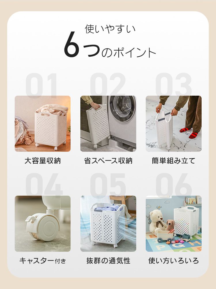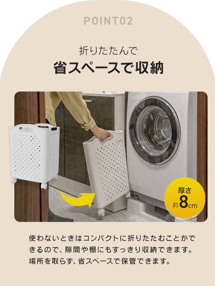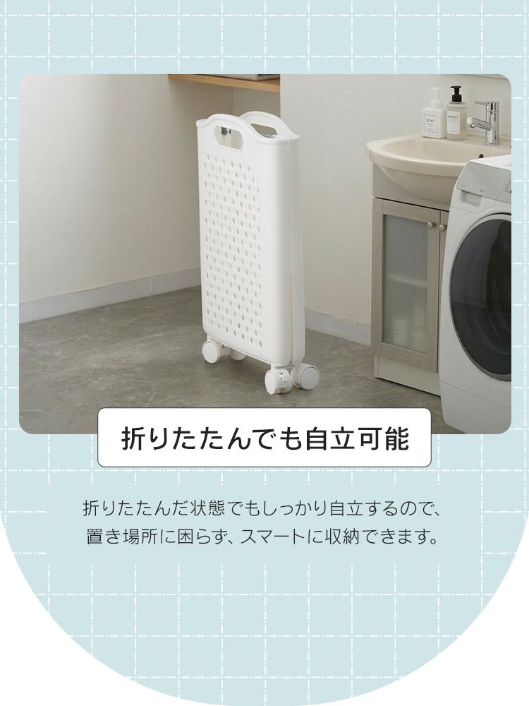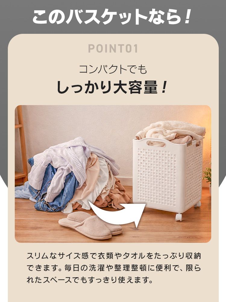 省スペースでたっぷり収納できるスリム設計のランドリーバスケットです。