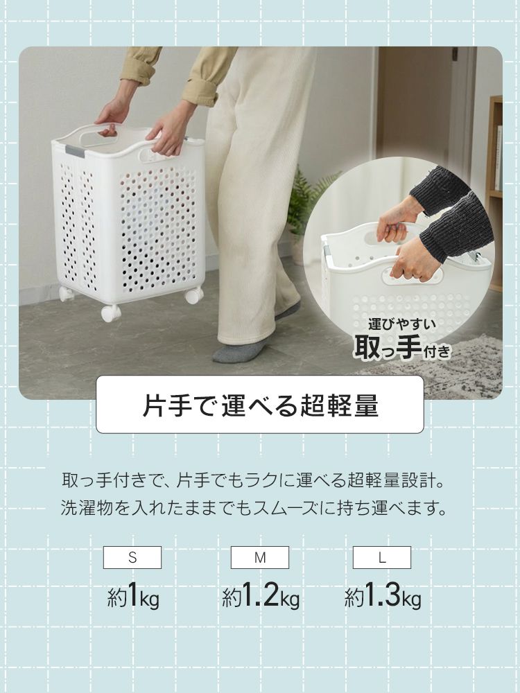 通気性に優れたメッシュ構造で湿気やニオイがこもりにくく、洗濯物入れ・洗濯カゴとして一年中快適にお使いいただけます。