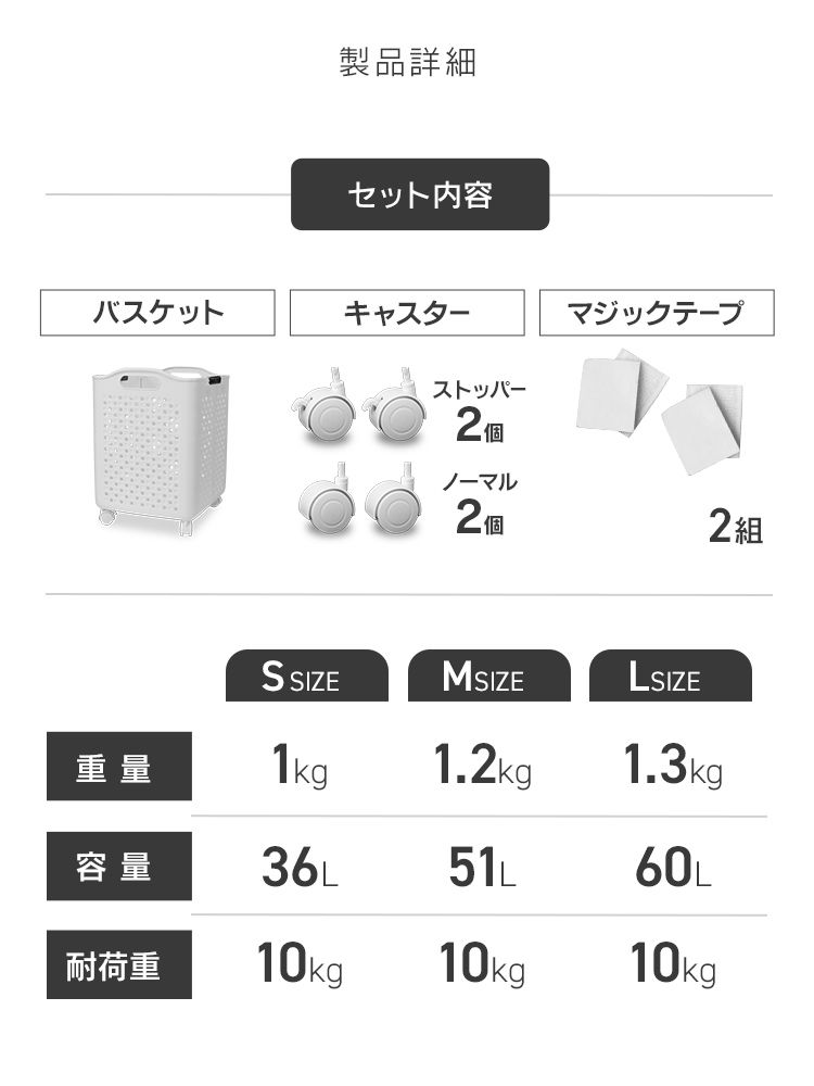 セット内容:バスケット、キャスター×4個、マジックテープ×2組