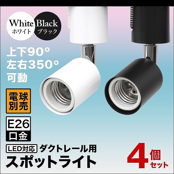 スポットライト 照明 電球用ソケット E26 ダクトレール用 シーリングライト ライティングレール 4個セット