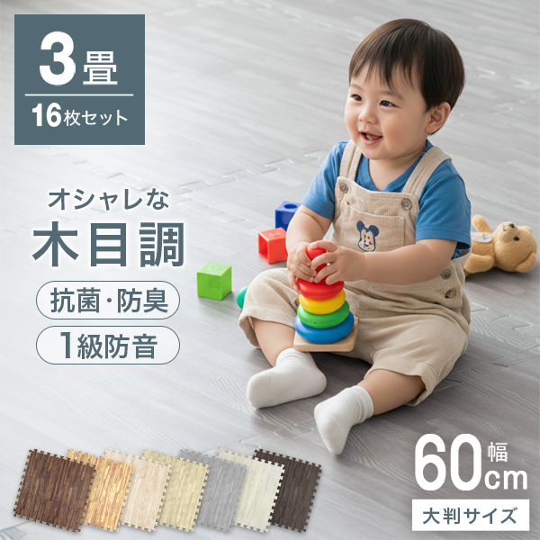 ジョイントマット 大判 3畳 木目調 プレイマット フロアマット ベビーマット 防音 騒音 吸収 60cm 厚さ10mm 1級防音 赤ちゃん クッションマット 抗菌 防臭