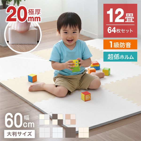ジョイントマット 大判 厚手2cm 12畳対応 防音一級 プレイマット ベビーマット クッションマット サイドパーツ付き パズル式 床保護 フロアマット