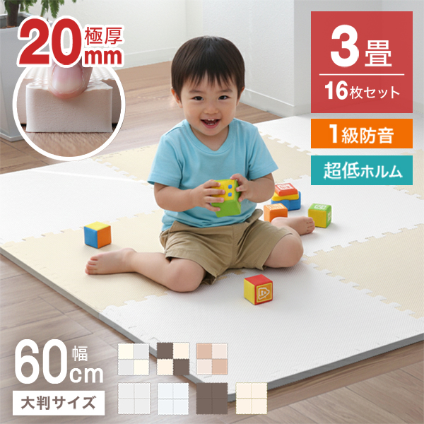 ジョイントマット 大判 厚手 2cm 3畳 プレイマット パズルマット クッションマット 床マット 60cm 防音 フロアマット ベビーマット サイドパーツ付 1級防音